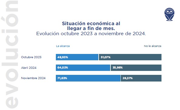 Una encuesta realizada por la consultora Demokratia reveló que, en octubre de 2023, más de la mitad de los habitantes del Gran Mendoza percibía que no le alcanzaba para llegar a fin de mes. En noviembre de 2024, menos de 3 de cada diez (el 28,37% de los consultados) percibe que sus ingresos les resultan insuficientes, lo que muestra una mejoría en el “Humor social de los mendocinos”.