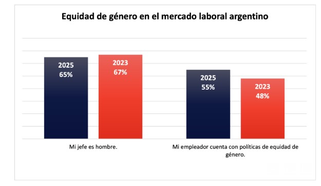 Es que si bien se ha incrementado el número de compañías que poseen políticas de equidad de género en 7 puntos porcentuales respecto de la medición de 2023, no se ha logrado un avance significativo en la paridad de género. Esto, continúa el mencionado estudio, “habida cuenta de que el número de trabajadores que refiere tener un jefe varón se ha reducido apenas 2 puntos porcentuales en estos 2 años”. Es decir que se deja en evidencia el largo camino que falta por andar en materia de equidad e igualdad en nuestro país.